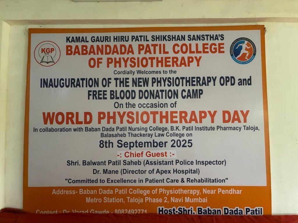 On the occasion of World Physiotherapy Day, celebrated on 8th September, Babandada Patil College of Physiotherapy organized a free physiotherapy camp for the elderly population. A blood donation camp was also held in collaboration with Babandada Patil Nursing Institute, Pharmacy Institute, and Law Institute. On the same day, a Physiotherapy OPD was inaugurated for the general public